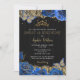 Vintage Blue Roses Black Gold Lace Sweet 16 Invitation