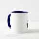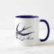 Customizable mug features a pretty vintage blue swallow bird with a lovely pink ribbon in his beak, with the word "Mom" in script.