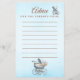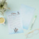 This soft blue design was inspired by classic nursery decor and timeless storybook charm. A gentle teddy bear and vintage-style baby carriage create a calm, elegant feel—perfect for collecting heartfelt wishes and sweet advice from loved ones at a baby shower.