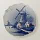 Vintage Blue White Delft Windmill Round Pillow