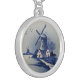 Vintage Blue White Delft Windmill Silver Plated Necklace