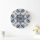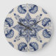 Vintage Blue White Geometric Flower Pattern Large Clock