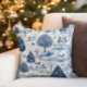 Vintage Blue White Winter Village Throw Pillow