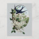 Vintage illustration. Oval with tree branch of blossoms along left side and a bluebird at top of oval