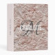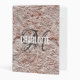 Modern blush pink 3 ring binder with a script monogram and white typography on a tooled faux leather background. Personalize with your name, initial on the cover and text on the spine.