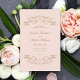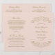 Warm blush pink antique flourishes bring a romantic glow to this beautifully vintage ceremony program. Ornate scrollwork frames your names and wedding date on the front cover, complemented by a coordinating blush-toned backing. Inside pages are fully customizable with your bridal party details, ceremony order, and a heartfelt thank you note from the couple. Programs are printed on text-weight paper and arrive flat, requiring a simple center fold.