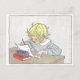 Vintage Book Illustration Girl Writing a Letter Postcard