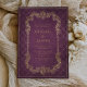 Plain white envelopes are included with paper invitations and will come to fit the invitation size you select. If you don’t need the envelopes, you may choose to not receive them by selecting the dropdown below "Envelopes" and choosing "None." If you’d like to have a design on your envelopes, you can browse all of these available envelopes to find the design that complements your Vintage Book Violet Red Gold Wedding Invitation.