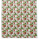 Shower curtain in a scattered print of cherries and leaves adapted from vintage botanical prints - Deep red cherries and green leaves on a white background