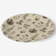 Vintage botanical floral pattern paper plate featuring soft cream and beige flowers with detailed stems, leaves, and delicate script accents on an aged neutral background. Elegant and timeless with a rustic floral aesthetic, this seamless design is ideal for cottagecore lovers, garden enthusiasts, vintage style fans, and botanical art admirers.