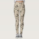 Vintage botanical floral pattern leggings featuring soft cream and beige flowers with detailed stems, leaves, and delicate script accents on an aged neutral background. Elegant and timeless with a rustic floral aesthetic, this seamless design is ideal for cottagecore lovers, garden enthusiasts, vintage style fans, and botanical art admirers.