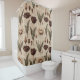 Vintage botanical floral pattern shower curtain featuring soft cream and beige flowers with detailed stems, leaves, and delicate script accents on an aged neutral background. Elegant and timeless with a rustic floral aesthetic, this seamless design is ideal for cottagecore lovers, garden enthusiasts, vintage style fans, and botanical art admirers.