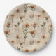 Vintage botanical floral pattern paper plate featuring soft cream and beige flowers with detailed stems, leaves, and delicate script accents on an aged neutral background. Elegant and timeless with a rustic floral aesthetic, this seamless design is ideal for cottagecore lovers, garden enthusiasts, vintage style fans, and botanical art admirers.
