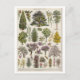 This postcard is a reproduction of a vintage educational chart / botanical illustration showing trees.