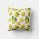 Throw pillow in a print of scattered lemons and leaves based on elements of vintage botanical art, digitally enhanced