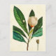 Postcard with a vintage botanical illustration of a Loblolly Bay Tree, illustrated by Pierre-Joseph Redoute, 1812. Digitally cleaned and enhanced antique image of a tree branch with bright green leaves and a white flower, with a light yellow parchment texture background.