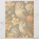 Beautiful letter size scrapbook paper / journaling paper sheet features an AI art created version of famous vintage botanical owl and flower illustrations with a distressed lined paper overlay.