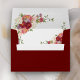 Elegant envelope featuring a beautiful flowers on the inside and dark red color on the outside.