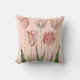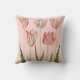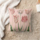 This pillow features a vintage botanical drawing of tulips, on a pale pink background.