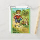 This is a beautiful vintage image of a little boy walking a path and meeting a rabbit, bringing Easter Greetings