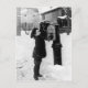 Boy at mailbox black and white vintage photo from the late 1800s. On a snowy day a young boy tries to reach the mailbox to send a letter, with houses in the background.