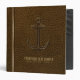 Vintage Brown Leather, Nautical Anchor Gold Accent 3 Ring Binder