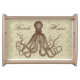 This beautiful antique octopus drawing* from the 19th Century has been recolored brown and placed on a pretty light brown-beige distressed / grunge background with a faint anchor pattern. The result is an original serving tray to match your nautical and beach theme home decor. The fancy, Victorian octopus has plenty of waving tentacles. The text reads "Beach House," but you can easily change or delete it. See matching items and color variations in our store!