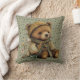 Vintage Brown Teddy Bear And Polkadots Throw Pillow