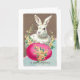 Vintage bunny with egg is featured on the front of this Easter card with greeting on the inside to send to family or friends