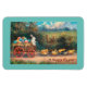 Adorable, vintage picture of a bunny driving a wagon full of colored eggs, with a team of chicks pulling the wagon, is featured on this Easter magnet. With message, "A Happy Easter", this magnet would make a cute decoration for Easter. Or give as a little gift too!