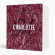 Modern burgundy 3 ring binder with a script monogram and white typography on a tooled faux leather background. Personalize with your name, initial on the cover and text on the spine.