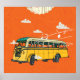 Vintage Bus: Clouds Texture Backdrop Poster