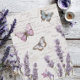 Lavender sprigs and delicate butterflies drift across faded handwritten script on a soft antique background. The watercolor artwork and botanical details give it a gentle vintage garden feel. Lovely for decoupage, junk journals, scrapbooks, and paper craft projects.