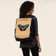 A vintage illustration, circa 1750, of a red and blue South American butterfly. Add your own text.