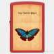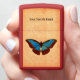 A vintage illustration, circa 1750, of a red and blue South American butterfly. Add your own text.