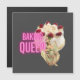 Fun design for women who love to bake cakes and desserts in particular. It features a vintage fancy costumed woman, neon pink "Baking Queen" text and frosted strawberry cake on dark gray background.