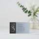 This business card features part of black vintage camera with lens. The camera is a mock up of what an antique European camera dating from the early 1930's might look like.