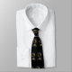 A tie covered with multiple images of a classic brownie camera on a black background.