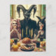 AI generated design Baphomet at the vintage Easter table where the two woman are enjoying a candy supper