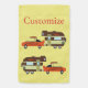 Vintage car towing RV camper caravan on vacation travel to customize, personalize by changing to your name