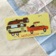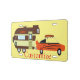 Vintage car towing RV camper caravan on vacation travel to customize, personalize by changing to your name