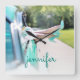 Add your name in retro script calligraphy typography to this fun and girly design featuring a girl in mint green high heels inside of a vintage turquoise car. This is a great gift for the girly girl or the feminine lady who loves the retro look, vintage cars, mint green, turquoise, or high heels and stilettos.