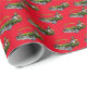 Santa Claus behind the wheel of a vintage 1970's luxury sedan full of gifts makes this wrapping paper perfect for dad, son, or the lovable gear head in your life!