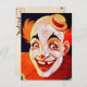 Vintage creepy old clown postcard. High quality, restored vintage image.