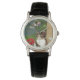 Watch featuring a cute kitten illustration. A white cat with dark brown stripes relaxes in a garden of spring flowers. A perfect gift for cat lovers!