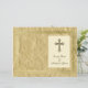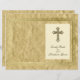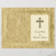 An elegant cover to accompany a program or menu, featuring a Christian cross, thin gold border, and crumpled vintage paper.