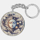 Vintage Celestial Half Sun & Moon Blue Yellow Keychain
