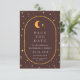 Our "Vintage Celestial Wedding" collection features a color scheme that spans from burnt orange to terracotta imitating deep sunset vibes that transcend into a glorious night. With textured faux foil accent on borders, moon and stars in gold and copper. Matching items from this collection are available in our store.