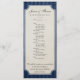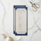 This design features a dusty navy blue striped background, and a simple, elegant ticket-like cream frame. The text alternates between classic Garamond and script wedding fonts, with an added script flourish for style. The design has been given a distressed, aged feel to complement the vintage design. These wedding programs are classic but not overly formal, exuding a vintage, old-fashioned charm with a contemporary sweetness and style.