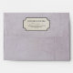 This vintage style, charming design features an aged, textured, and distressed pale lilac purple outside, while the inside is of vertical lilac and cream stripes, giving the envelope a fanciful, stylish feel. The back flap has a ticket-like outline framing your name(s) and return address. The front has been left blank for addressing and postage. This envelope was designed for a matching wedding invitation.